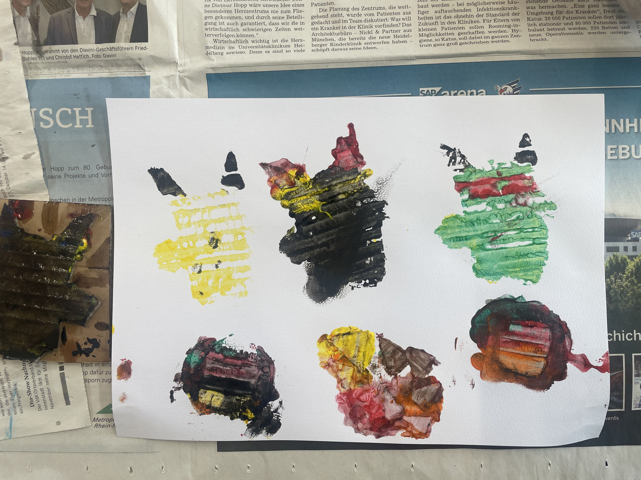 Die Schüler:innen der Klasse 1d tauchten zusammen mit MUS-E® Künstlerin Cynthia Wijono in eine kreative und experimentelle Welt ein, um spielerisch Material, Form und Farbe zu erforschen. Im ersten Teil des Projekts wurden kleine Figuren und Objekte aus Pappmaché geformt. Anschließend gestalteten die Kinder aus farbigem Pappmaché individuelle Selbstportraits, indem sie das Material zusammendrückten und eine neue Form des "Malens" entdeckten. Diese Selbstportraits wurden zu einem großen Wandteppich verknüpft und in der Aula präsentiert. Im weiteren Verlauf des Projekts lernten die Schüler:innen verschiedene Farben und Techniken kennen, darunter Acryl- und Aquarellfarben, Ölpastellkreiden und Wachsmalstifte. Auch Naturfarben wie Rote Beete, Spirulina und Kurkuma fanden Anwendung.