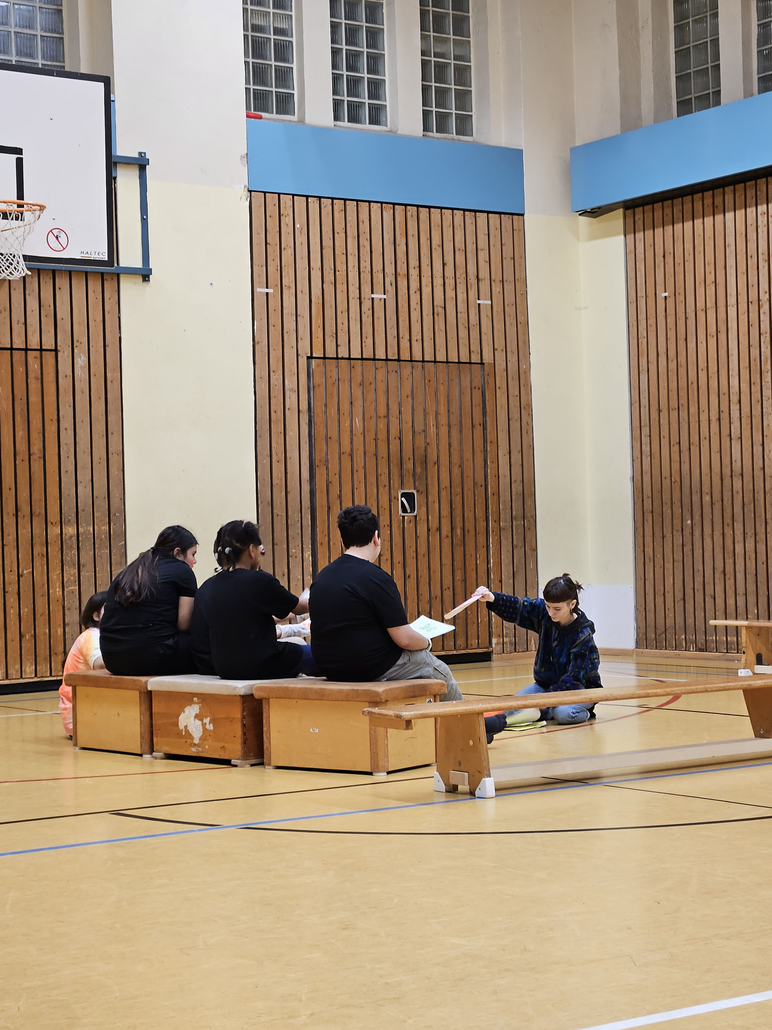 Die Schüler:innen der Klasse 6/7 beschäftigten sich im Projekt „Zeitreise in die Zukunft“, geleitet von MUS-E® Künstlerin Antonia Jäcklin mit Schauspieltechniken und verschiedenen kreativen Rollen. Dabei reisten sie gedanklich 20 Jahre in die Zukunft und entwarfen Visionen davon, wer sie später einmal sein möchten. Die Vorstellungen sollten dabei nicht realistisch sein, sondern der Phantasie freien Raum lassen. Das Projekt begann mit Improvisationsübungen und Theaterspielen, um Grundkenntnisse im Schauspiel zu vermitteln. Im weiteren Verlauf reflektierten die Schüler:innen ihre persönlichen Stärken, Schwächen, Träume und Hindernisse. Themen wie Mut und Ängste wurden gemeinsam erarbeitet, wobei Übungen wie der „Starke Rücken“ das Selbstvertrauen stärkten.