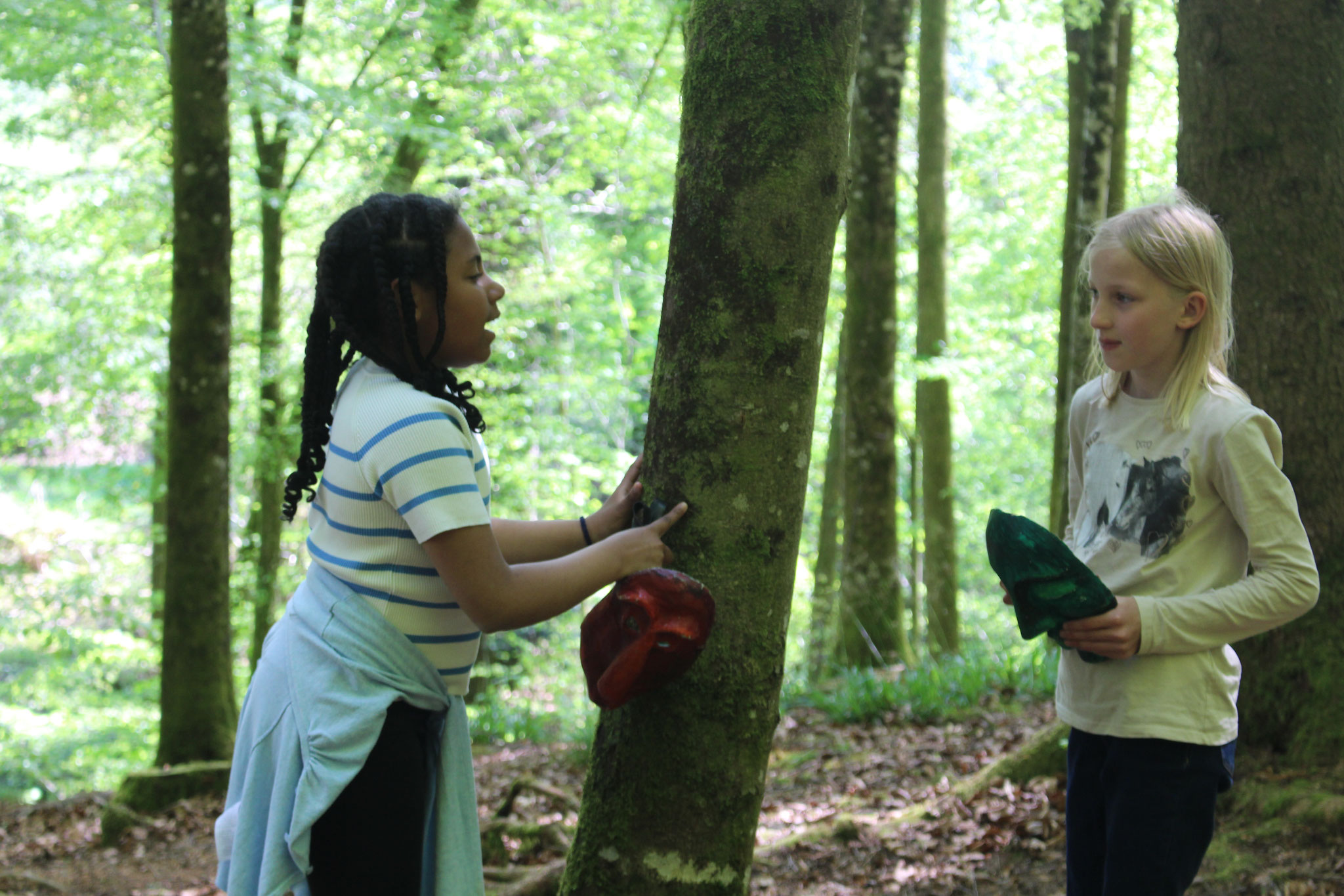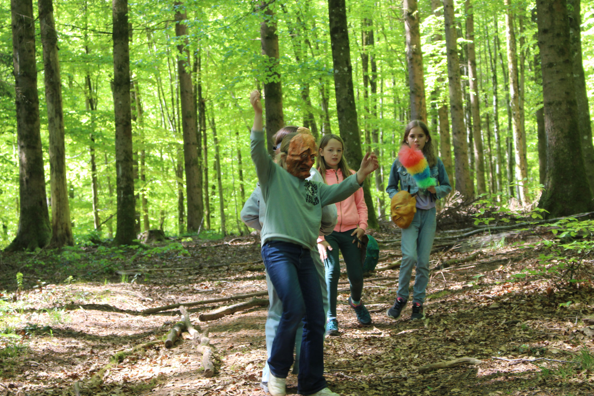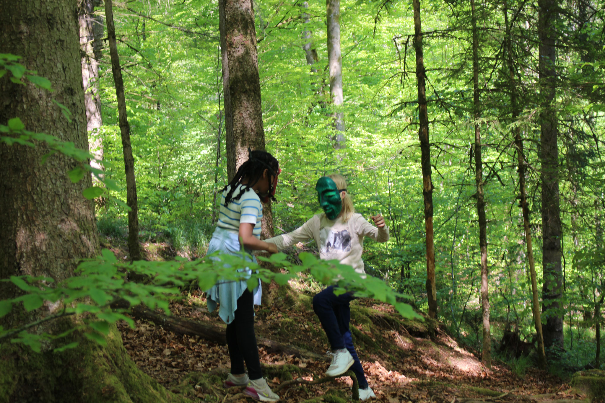 Die Klasse 4 erlebte im 2. Halbjahr 2024/25 ihr MUS-E® Projekt "Maskentheater" mit MUS-E® Künstler Len Shirts. Die Arbeit gliederte sich in vier Phasen und verband künstlerische Disziplin, Ausdruckskraft und gemeinsames Erleben. Zu Beginn standen Übungen zu Gruppendynamik, Rhythmus und Beweglichkeit im Mittelpunkt. Mit der sogenannten Isolationstechnik lernten die Kinder, einzelne Körperpartien bewusst einzusetzen. Anschließend wählten sie ihre Masken und entwickelten dazu differenzierte Figuren: Wie denkt und fühlt meine Figur? Wie bewegt sie sich? Welche Haltung prägt sie? Die Kinder tauchten intensiv in die Arbeit an ihrer Persona ein. Ein Höhepunkt war der gemeinsame Ausflug auf einen Hof im Schwarzwald.