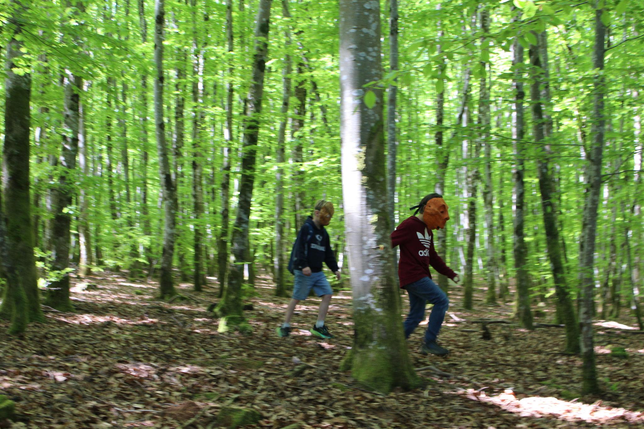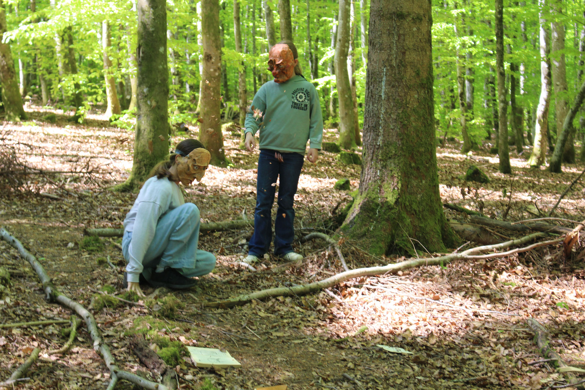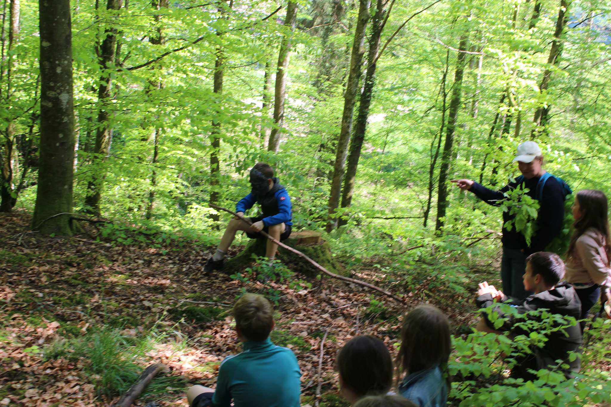 Die Klasse 4 erlebte im 2. Halbjahr 2024/25 ihr MUS-E® Projekt "Maskentheater" mit MUS-E® Künstler Len Shirts. Die Arbeit gliederte sich in vier Phasen und verband künstlerische Disziplin, Ausdruckskraft und gemeinsames Erleben. Zu Beginn standen Übungen zu Gruppendynamik, Rhythmus und Beweglichkeit im Mittelpunkt. Mit der sogenannten Isolationstechnik lernten die Kinder, einzelne Körperpartien bewusst einzusetzen. Anschließend wählten sie ihre Masken und entwickelten dazu differenzierte Figuren: Wie denkt und fühlt meine Figur? Wie bewegt sie sich? Welche Haltung prägt sie? Die Kinder tauchten intensiv in die Arbeit an ihrer Persona ein. Ein Höhepunkt war der gemeinsame Ausflug auf einen Hof im Schwarzwald.