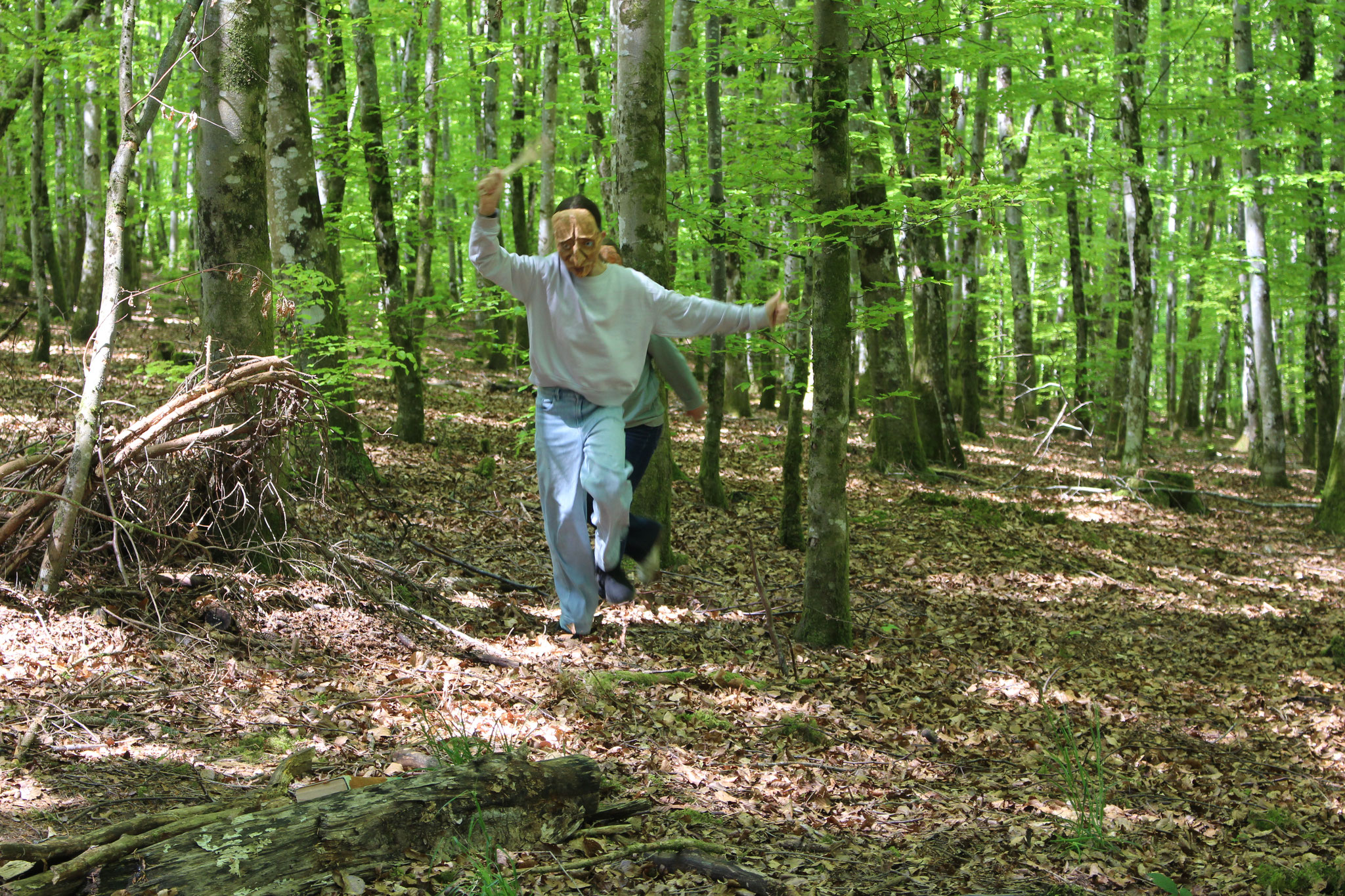 Die Feedbacks – auch in spielerischer Form, die alle involvierten – waren klug. Nachdem alle erste Maskenbegegnungen hatten, folgten spielerische Zweierarbeiten zur Charakterentwicklung. Dann die Aufgabe: zwei Maskenwesen treffen aufeinander! Die Kinder waren begeistert. Die resultierenden Maskenszenen hatten Potenzial, und gemeinsam wurde entschieden, weiter an ihnen zu gestalten. Am Elternabend wurden alle Szenen gespielt. Die Kinder führten selbständig Szenenspiel und Umbau durch, und die Zuschauenden haben die Maskenszenen genossen.
