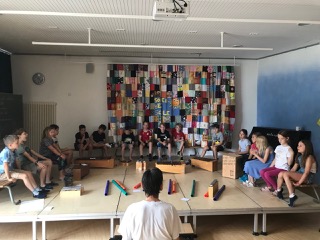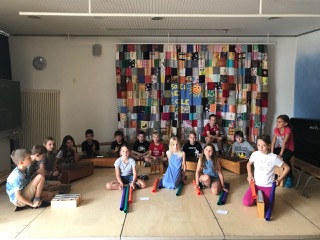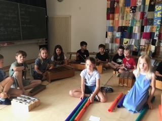 Im Perkussionsprojekt mit MUS-E® Künstler Ro Kuijpers forschte die Klasse 3a zunächst an verschiedenen Trommeln und Perkussionsinstrumenten, wie sich Töne und Geräusche erzeugen lassen. Anhand verschiedener rhythmischer Übungen wurde ausprobiert, wie man Takt und Tempo hält, präsent und selbstbewusst auftritt und Vertrauen ins eigene Können gewinnt.