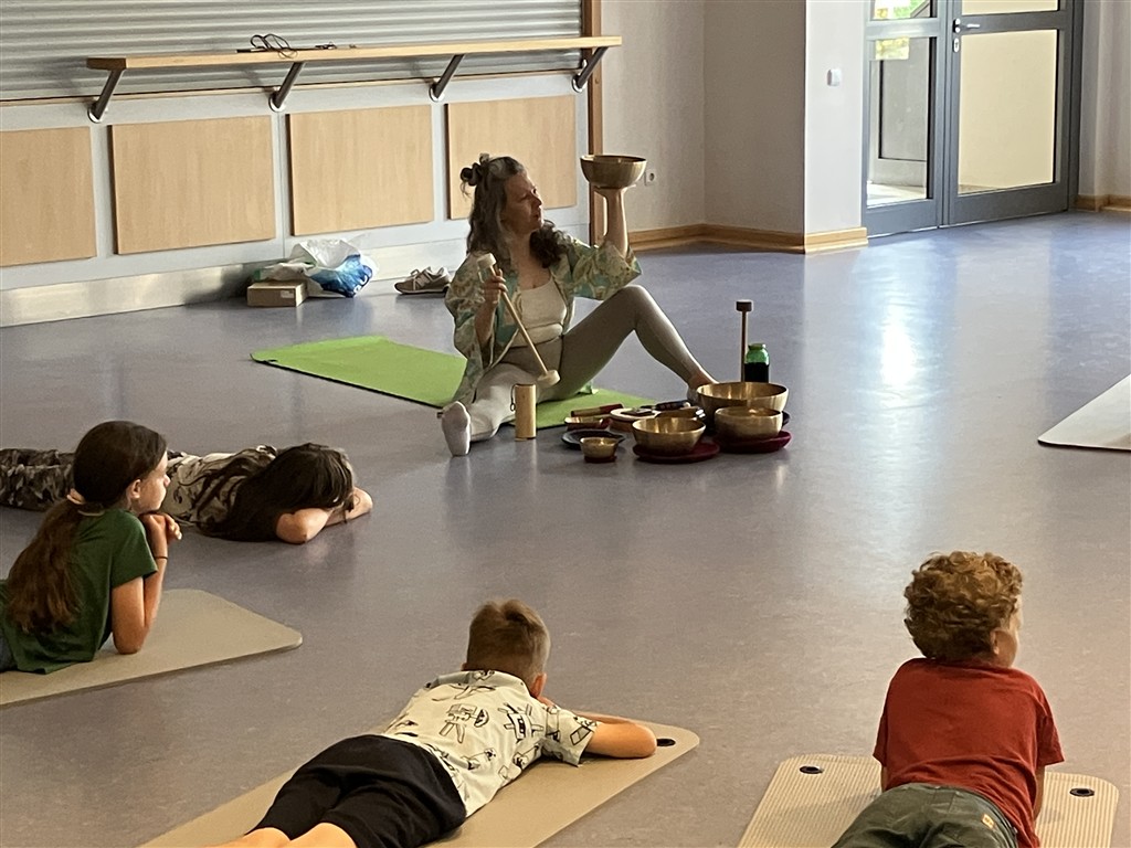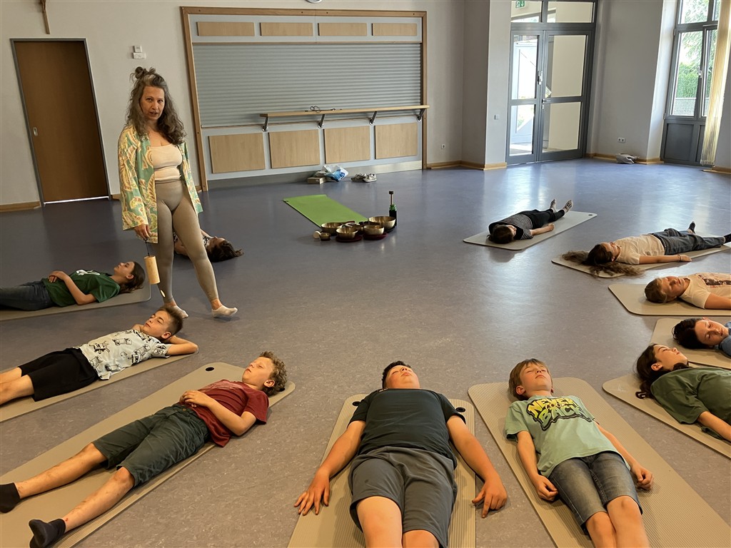 Im zweiten Schulhalbjahr arbeiteten die Klassen 3b und 4b gemeinsam an einem besonderen Projekt: Yoga und Körperwahrnehmung mit MUS-E® Künstlerin Daniela Klippel. Jeden Donnerstag verwandelte sich die neu gebaute Turnhalle der Gemeinde in einen Ort der Ruhe und Achtsamkeit. Unter Danielas Anleitung lernten die Kinder verschiedene Yogapositionen, übten bewusstes Atmen und ließen ihre Gedanken zur Ruhe kommen. Für 90 Minuten konnten sie den schulischen Alltag hinter sich lassen.